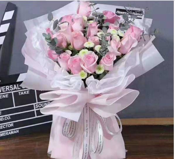夜上海论坛19朵粉玫瑰花束 花材款式包装如图 |