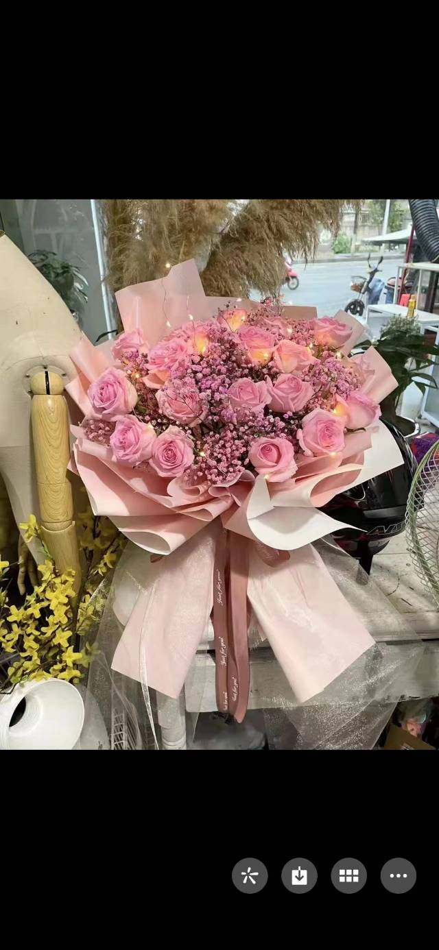 19朵粉玫瑰满天星加灯鲜花束 ,如图包 |