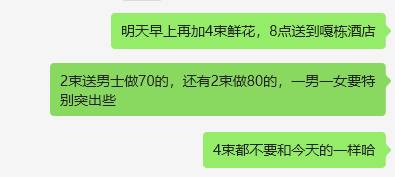 2束送男士做70的,还有2束做80的,一男一女要特别突出些,不要相同的 |