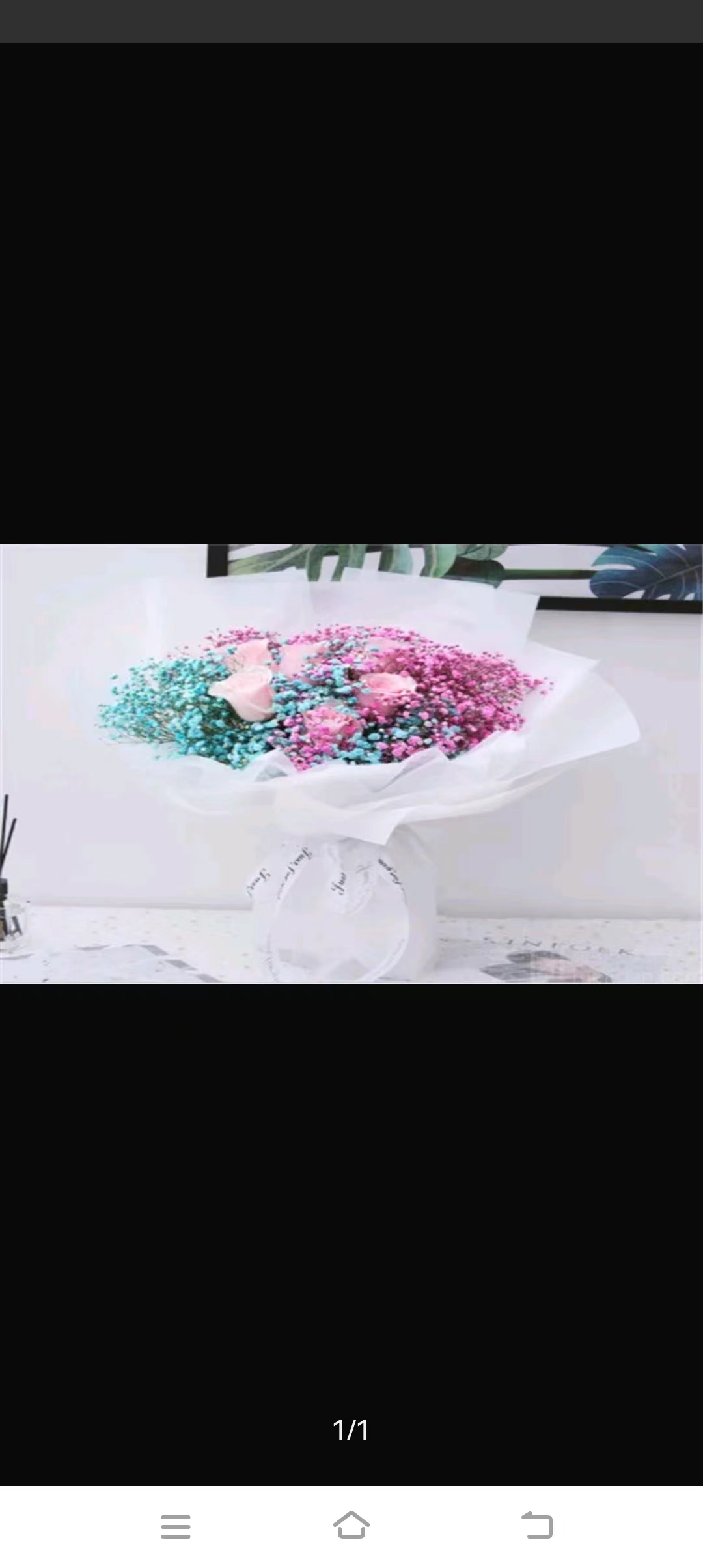 夜上海论坛6朵粉玫配蓝色紫色满天星花束如图 |