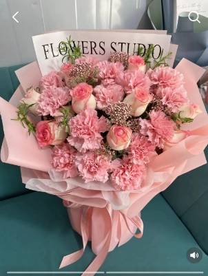 15支粉康乃馨8支爱莎玫瑰花束,按图做 |