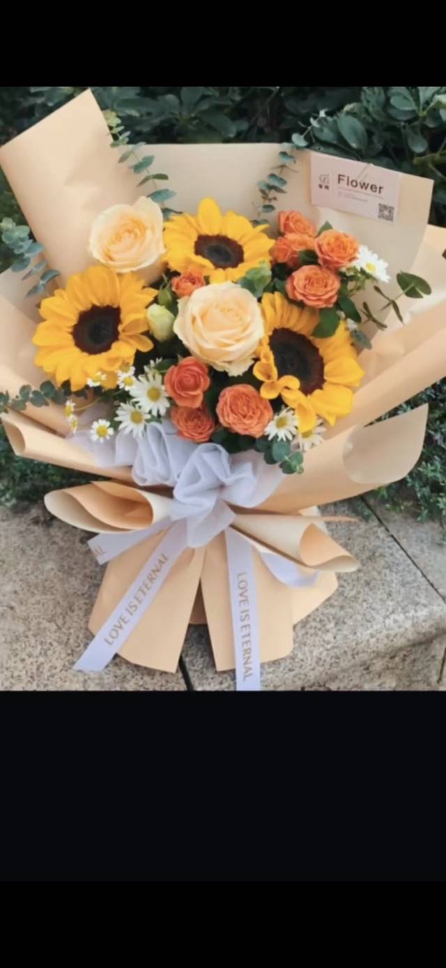夜上海论坛13朵香槟加2朵向日鲜花束,如图包 |