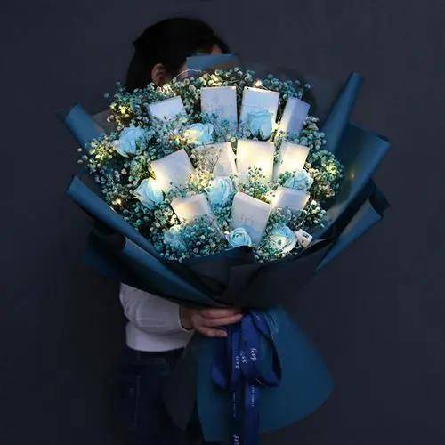 10包大重九烟9朵碎冰蓝玫加蓝星包花束,如图款式 |