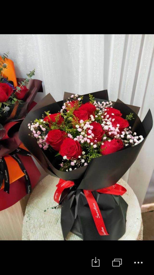 33朵红玫花束黑纱款,如图包装大气好看,有卡片,六一当天按时送达。 |