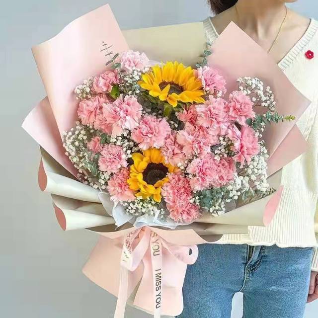 夜上海论坛19支粉康乃馨玫瑰2朵向日鮮花束,如圖包 |