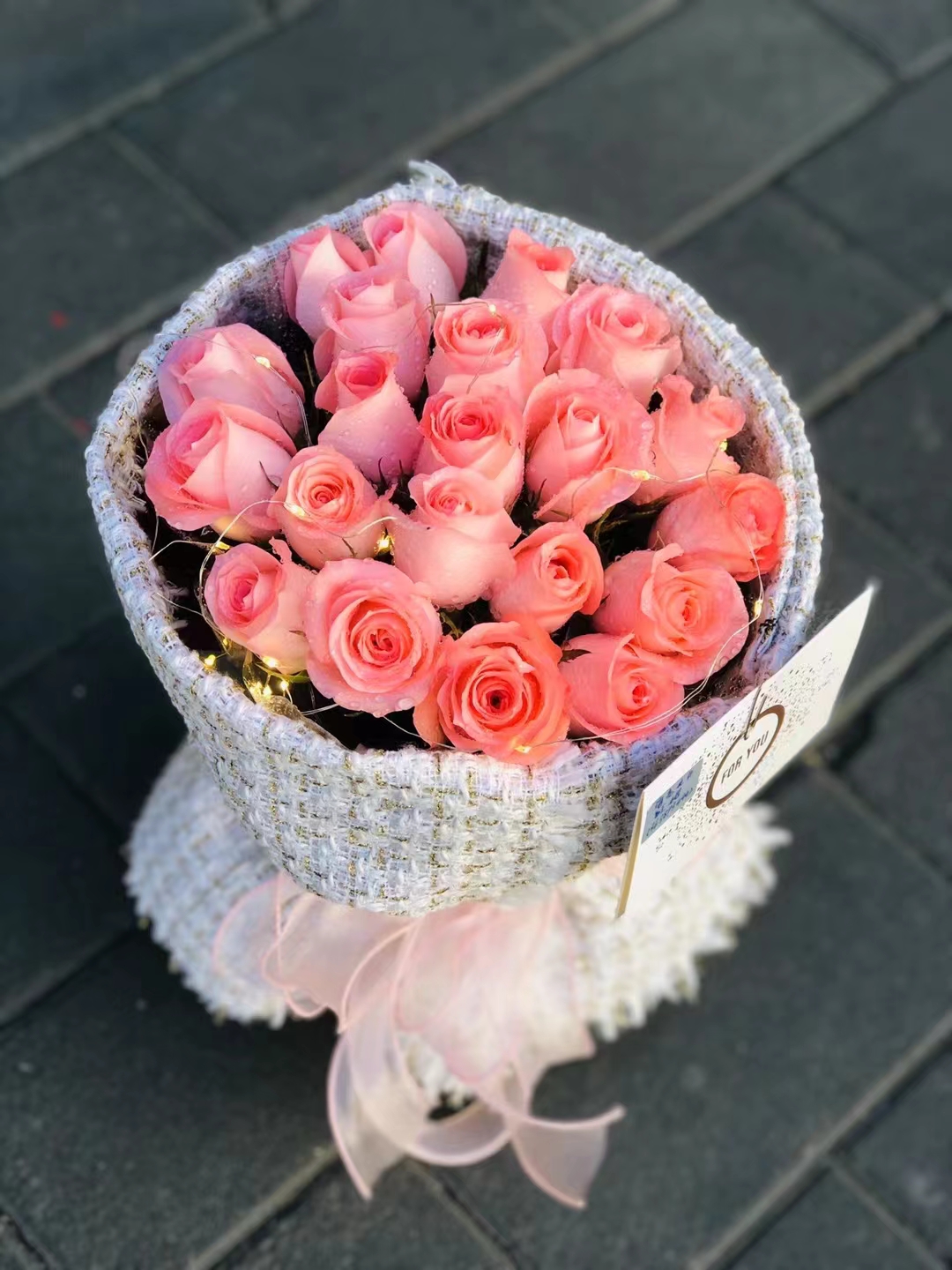 夜上海论坛11朵玫瑰花束两束,香槟一束粉玫瑰一束 |