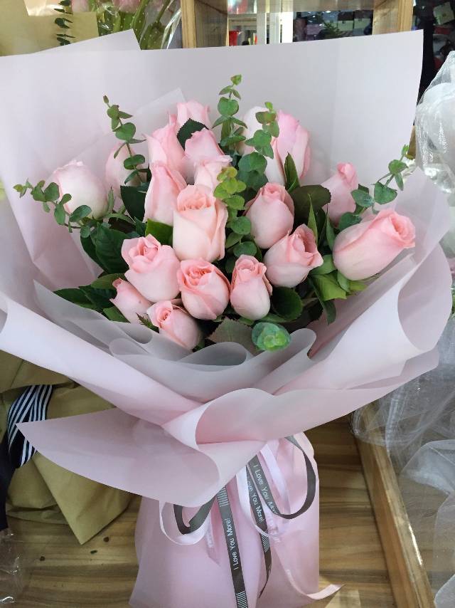 夜上海论坛19朵香槟玫瑰花束 (客户同意换红玫瑰) 款式包装如图 |