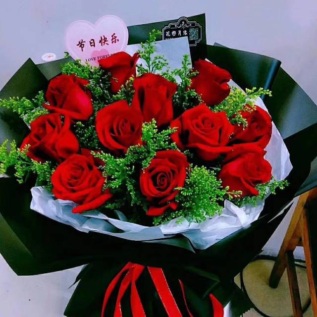 11朵红玫花束,如图包装大气好看,有卡片,做好马上送。 |