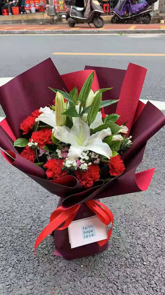 夜上海论坛11朵红玫加2支白百合花束,如图包 |