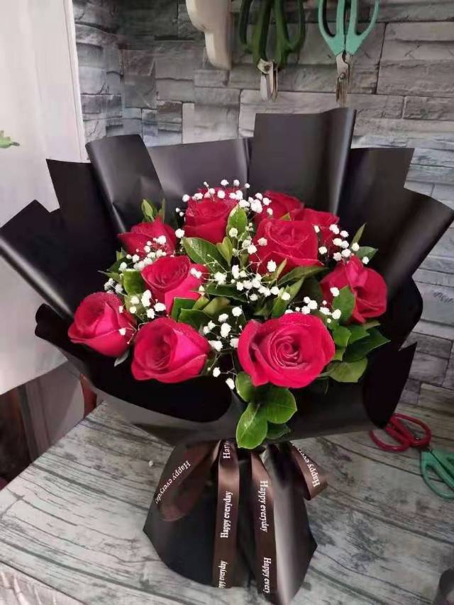19朵红玫加满天星鲜花束,如图包 |