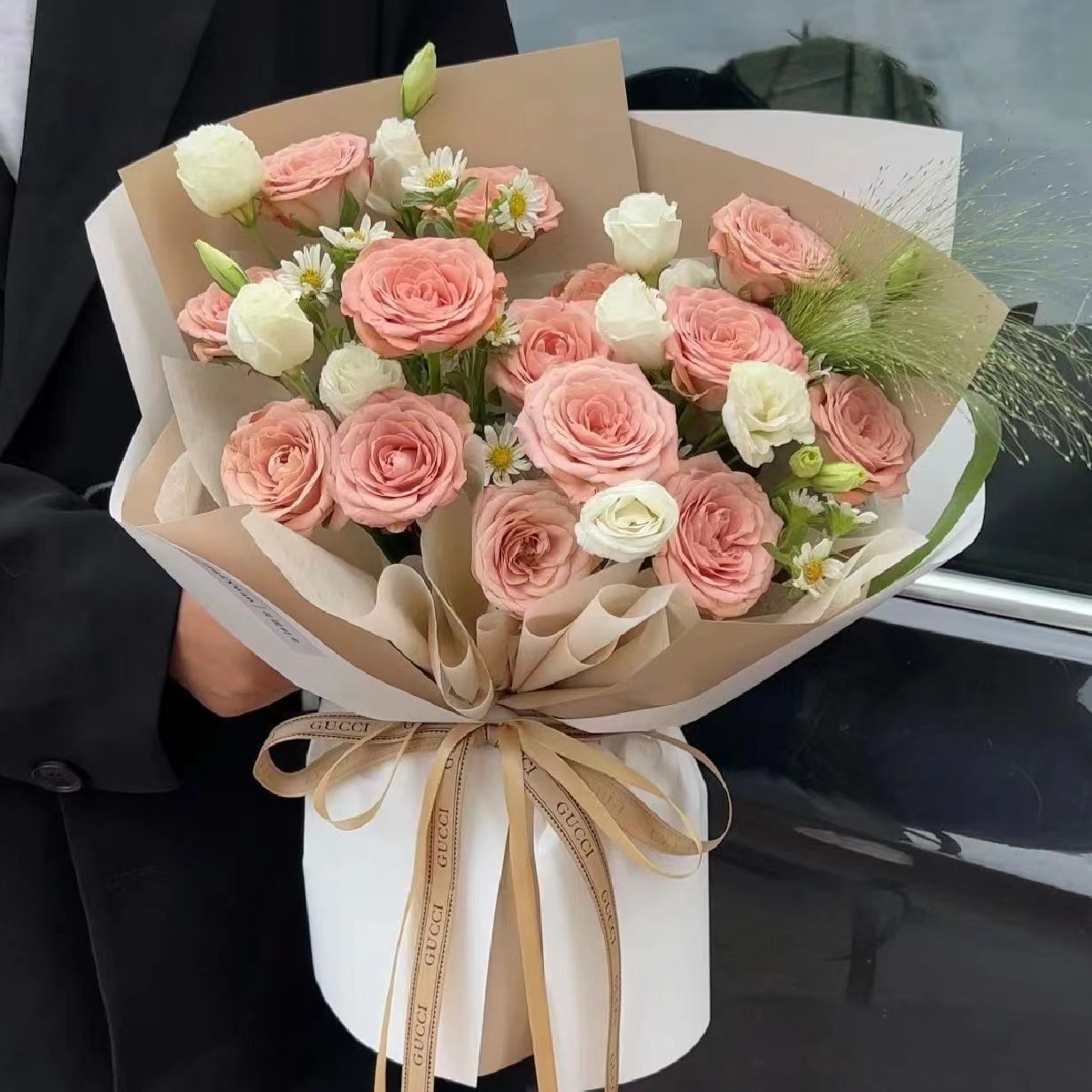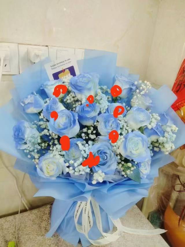夜上海论坛19朵碎冰蓝玫瑰+9朵红玫瑰花束(红玫瑰插在中间做成心形)
