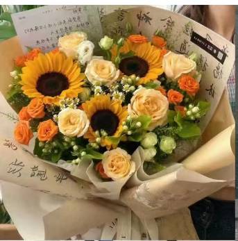 夜上海论坛6支香槟3支向日葵配橙芭芘洋桔梗花束,如图 |