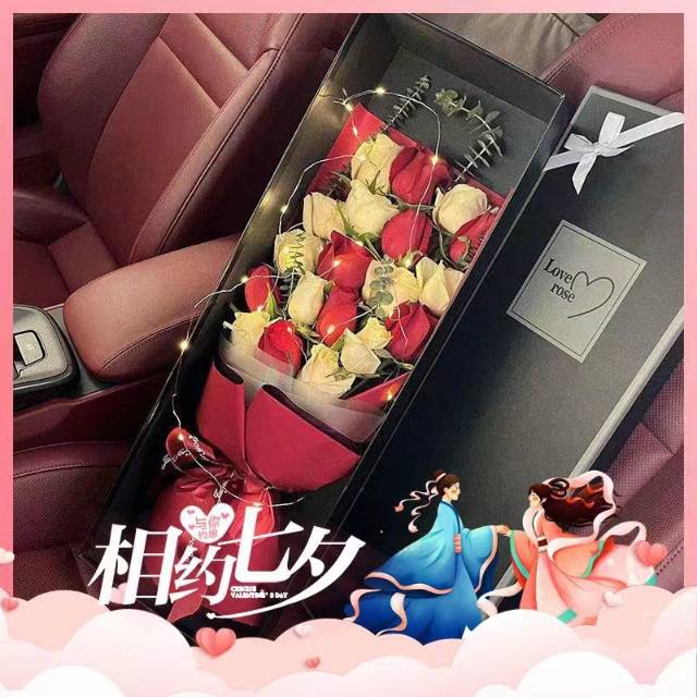 19支香槟+红玫瑰混搭礼盒装,加灯 |