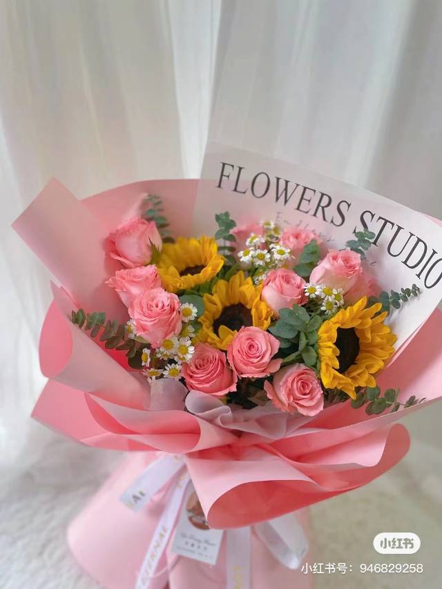 夜上海论坛11支粉玫瑰3支向日葵花束,如图 |
