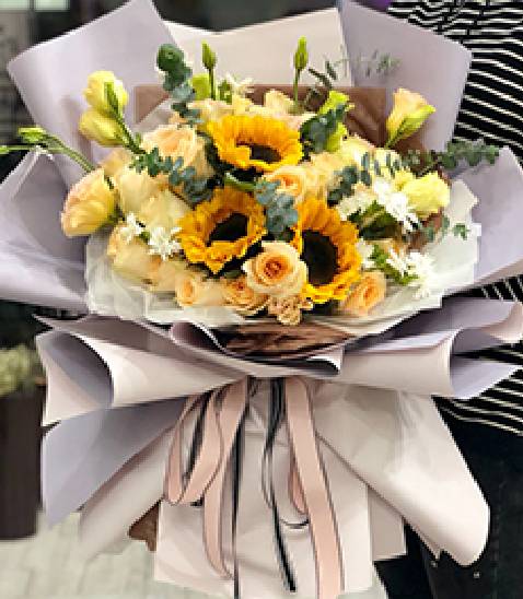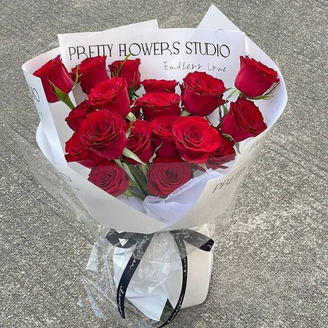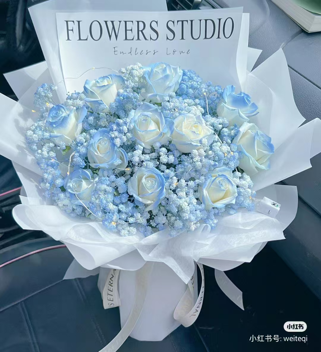 夜上海论坛9朵粉玫瑰满天星花束,如图 |