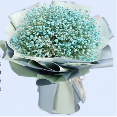 6朵粉玫瑰混搭粉蓝满天星 如图包装 |
