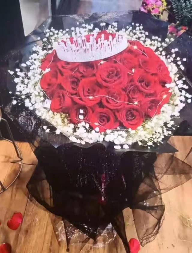 夜上海论坛33支红玫瑰配白色满天星黑纱款带皇冠,如图包 |
