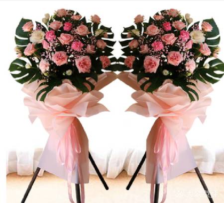 夜上海论坛23朵粉玫瑰花篮(1对),花材新鲜,有贺词,如图 |