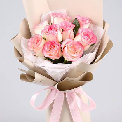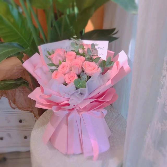 9朵爱莎玫瑰花束 ,配点满天星之类的点缀 |