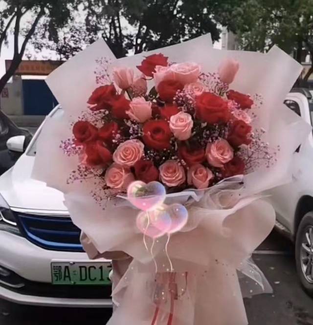 33红玫瑰 黑色包装纸包装 搭配满天星配花 |
