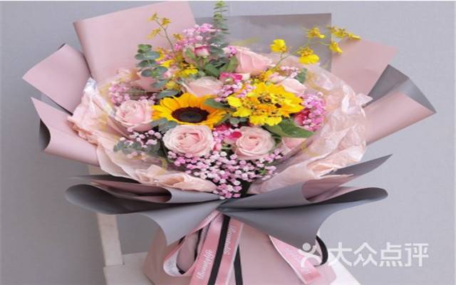 夜上海论坛星空佳人-6朵粉玫瑰满天星混搭花束
