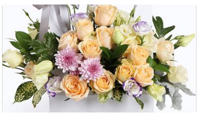 夜上海论坛19朵香槟玫瑰+5香槟紫色洋桔梗混搭手提花篮 一个(紫边洋桔梗换绿洋桔梗和波浪粉洋桔梗混搭),有卡片 ,按时送达。 |