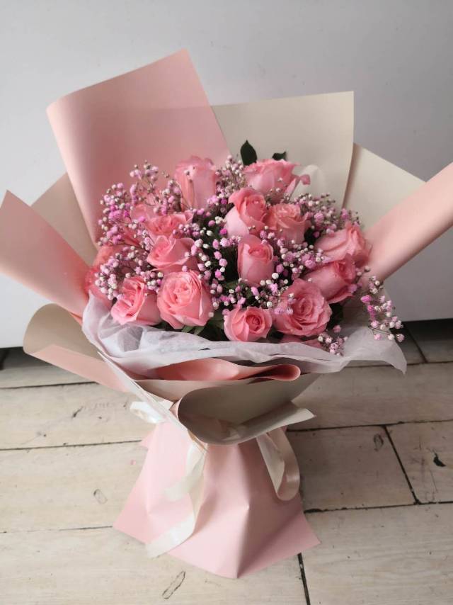 19朵粉玫花束,如图包装大气好看,现在做好马上送。 |