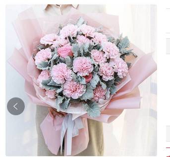 19朵粉色康乃馨加2朵粉玫鲜花束。如图 |