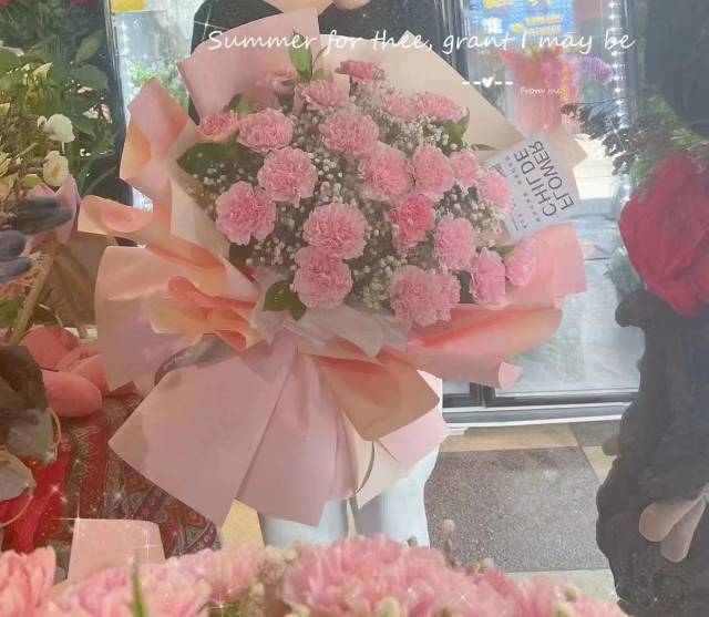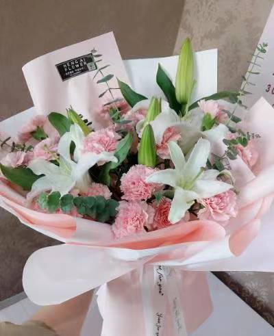 夜上海论坛15朵粉康乃馨混搭2支百合花束 如图 |