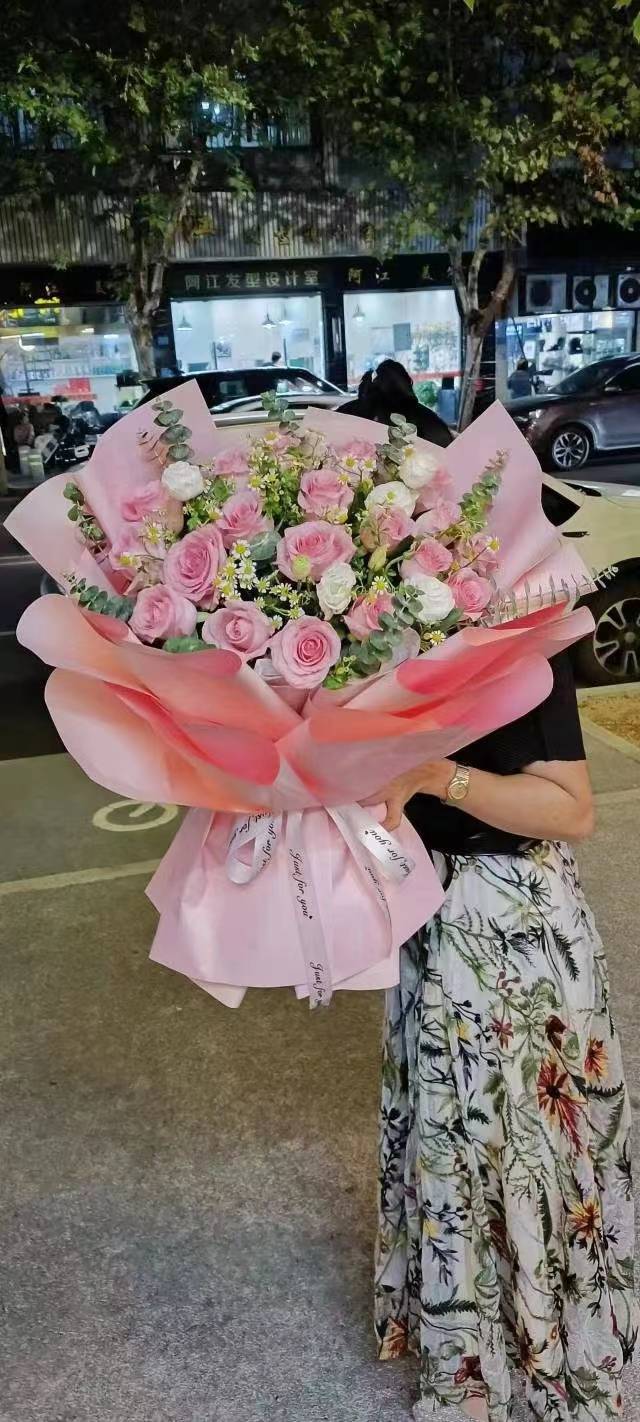 夜上海论坛19朵粉康乃馨2支粉玫瑰花束,如图 |