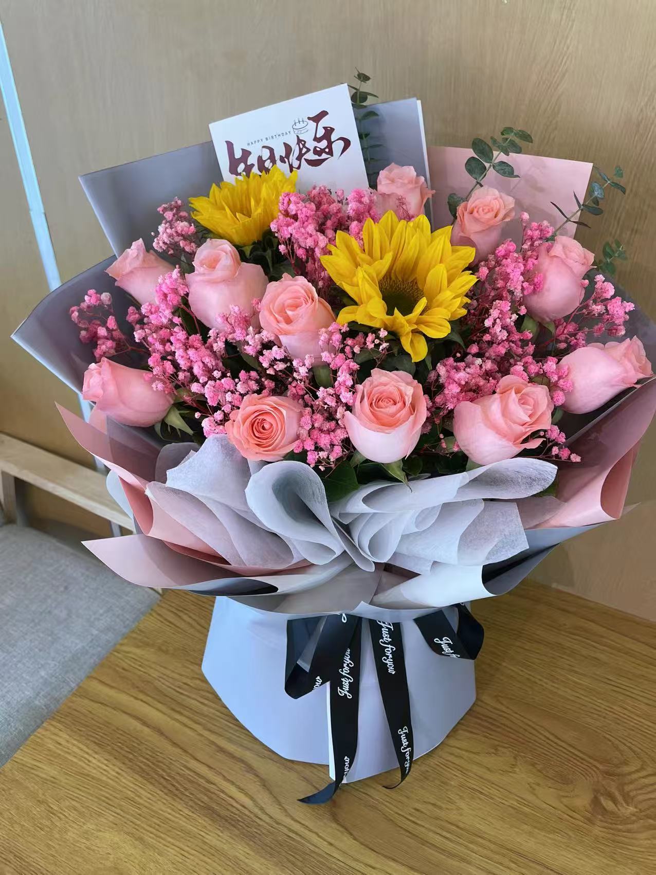 夜上海论坛33支红康乃馨配满天星花束,如图 |