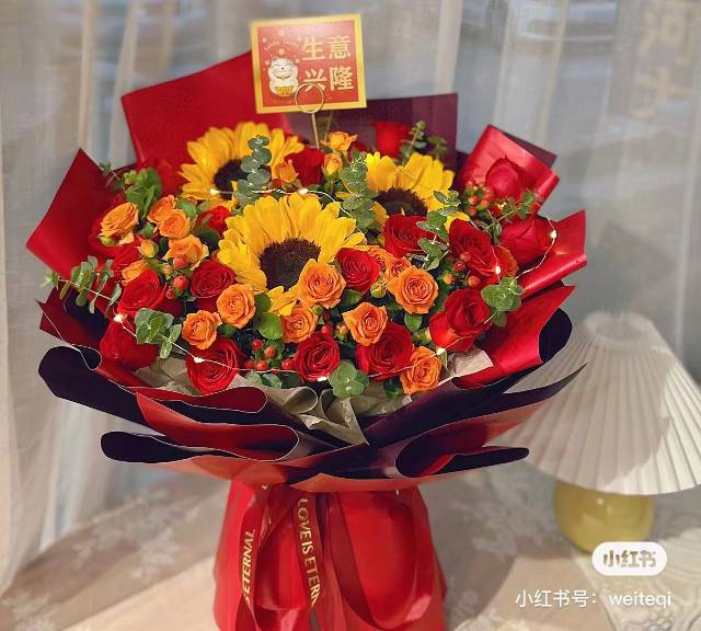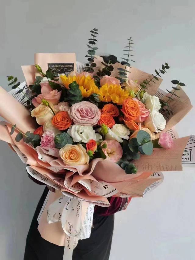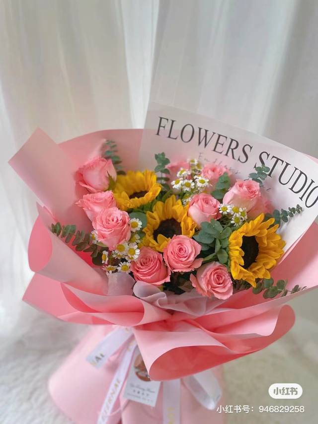 夜上海论坛11支粉玫3支向日葵花束,如图 |