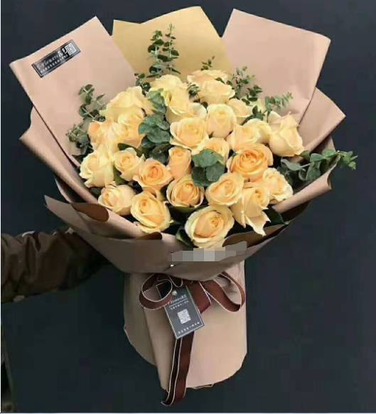 33朵香槟玫瑰花束 款式包装如图,包装大气,花材新鲜,谢谢 |