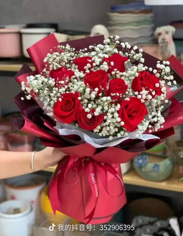 19朵红玫瑰加1支多头白百合花束,如图包 |