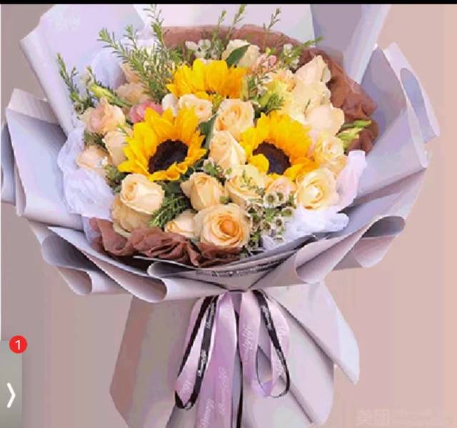 夜上海论坛21朵香槟玫瑰3朵向日葵花束,如图 |