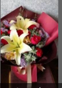 11朵红玫瑰百合花束 款式包装如图 要红色包装纸
