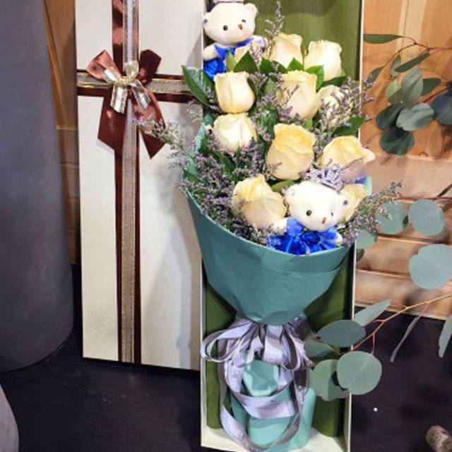 夜上海论坛藕色 11朵香槟玫瑰礼盒 +两只小熊 如图