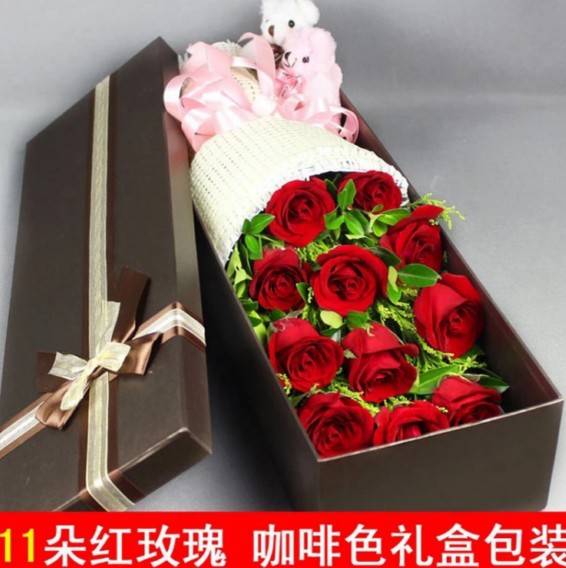 夜上海论坛11朵红玫瑰礼盒+2小熊。如图制作。包好看些 |