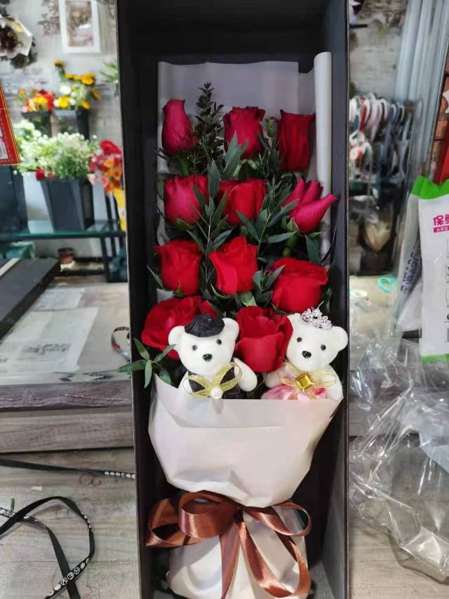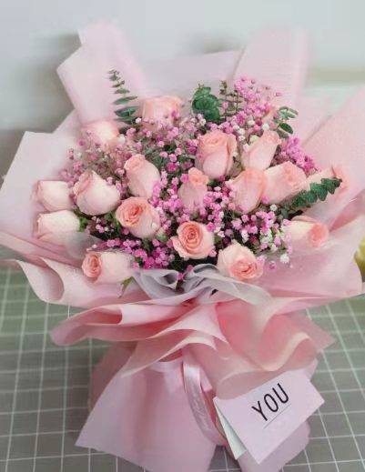 玫瑰桔梗百合满天星混搭花束。如图 |