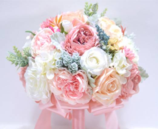 真花17朵香槟粉白混搭新娘手捧花 款式如图 |