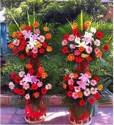 夜上海论坛40朵扶郎花 搭配3朵百合 散尾 剑叶 花篮 红棉纸