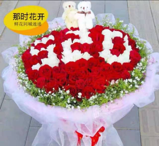 图1:99朵玫瑰520两小熊如图外围满天星 数量:1