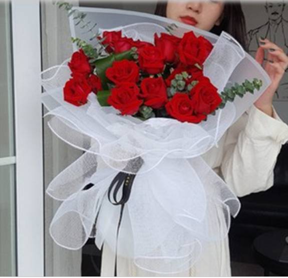 19朵红玫瑰花束 款式包装如图制作 加一个皇冠 |