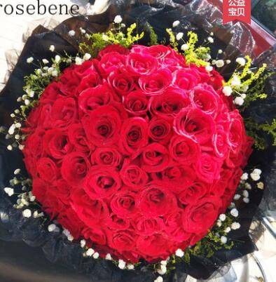 99朵红玫瑰黑纱款,搭配黄英,满天星,如图制作。花要新鲜 |