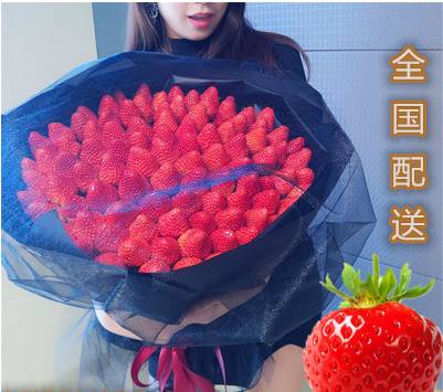 99颗草莓 黑色纸包装 蒙面黑纱 红色丝带 |