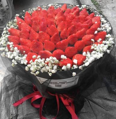 52颗草莓白色满天星 黑纱包装 |