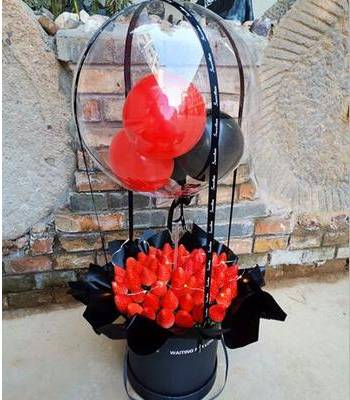 52颗草莓 灯珠 波波球 2个黑色2个红色小气球 抱抱桶黑色纸围边 |