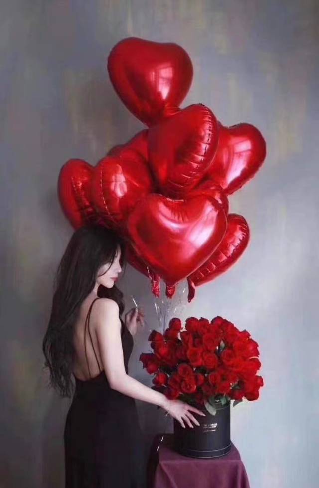 99支红玫瑰抱抱桶 爱心红气球 黑色银色金属气球 (图2标记的地方贴字母Happy birthday Raven),发光灯珠,(图三那个位置做一个小的蓝色满天星装饰) |