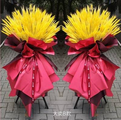 夜上海论坛350支金黄色麦穗 红色包装纸 三脚架 红色字母丝带 |