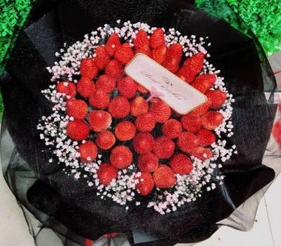 33草莓粉色满天星 黑色包装黑网纱 |